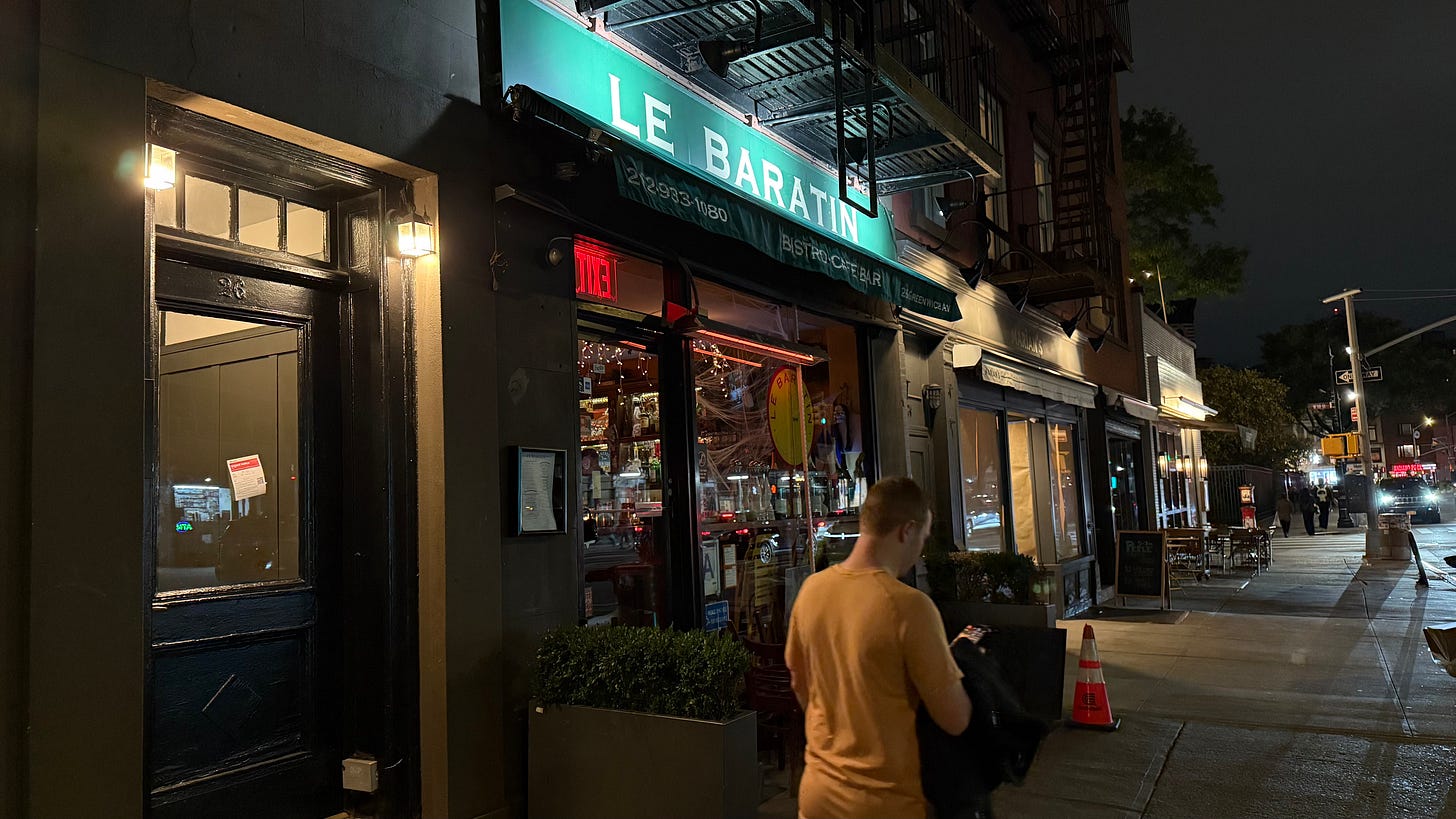 There are countless bistros around New York, some from fine-dining chefs gone comfy or restaurant groups optimizing the menu down to the number of lardons on your Salade Lyonnaise. But Le Baratin has a gives-no-fucks relentlessness to it that appeals to me—I want a bistro that feels like it would be here doing this whether anyone showed up or not.
